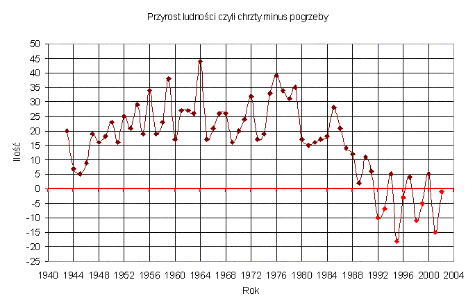 Liczba chrztów, ślubów i pogrzebów wg ksiąg parafialnych prowadzonych od momentu utworzenia samodzielnej placówki duszpasterskiej w Miotku w 1942 r.